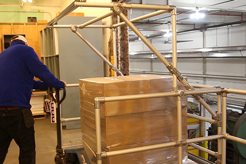 Vormontierte Teile an der Palettenschleuse ermöglichen eine einfache Montage vor Ort.